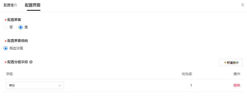 配置界面:选择【是】后,使用【侧边分组】可辅助快速筛选某字段下的廓形,若选择【否】则显示默认界面。