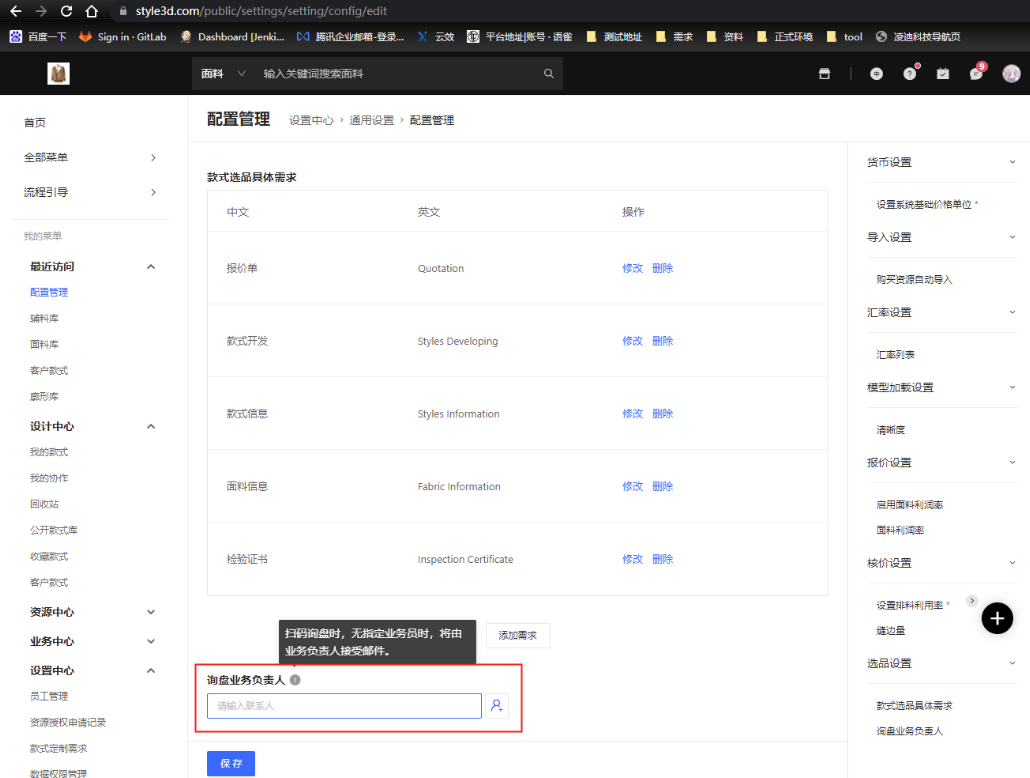 分享页面询盘无指定业务员时,设置中心-配置管理 询盘业务负责人,如果有配置则发邮件给询盘业务负责人邮箱,没有则发给管理员
