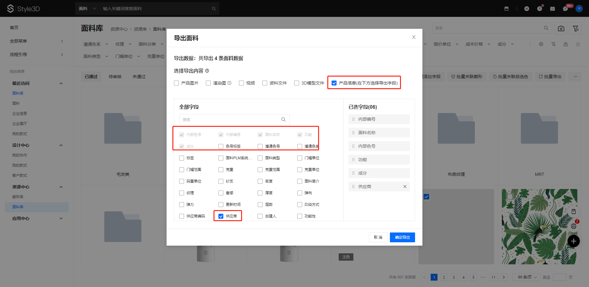 勾选产品信息,勾选要改的字段:供应商(灰色的字段是默认勾选了必填字段),点击导出