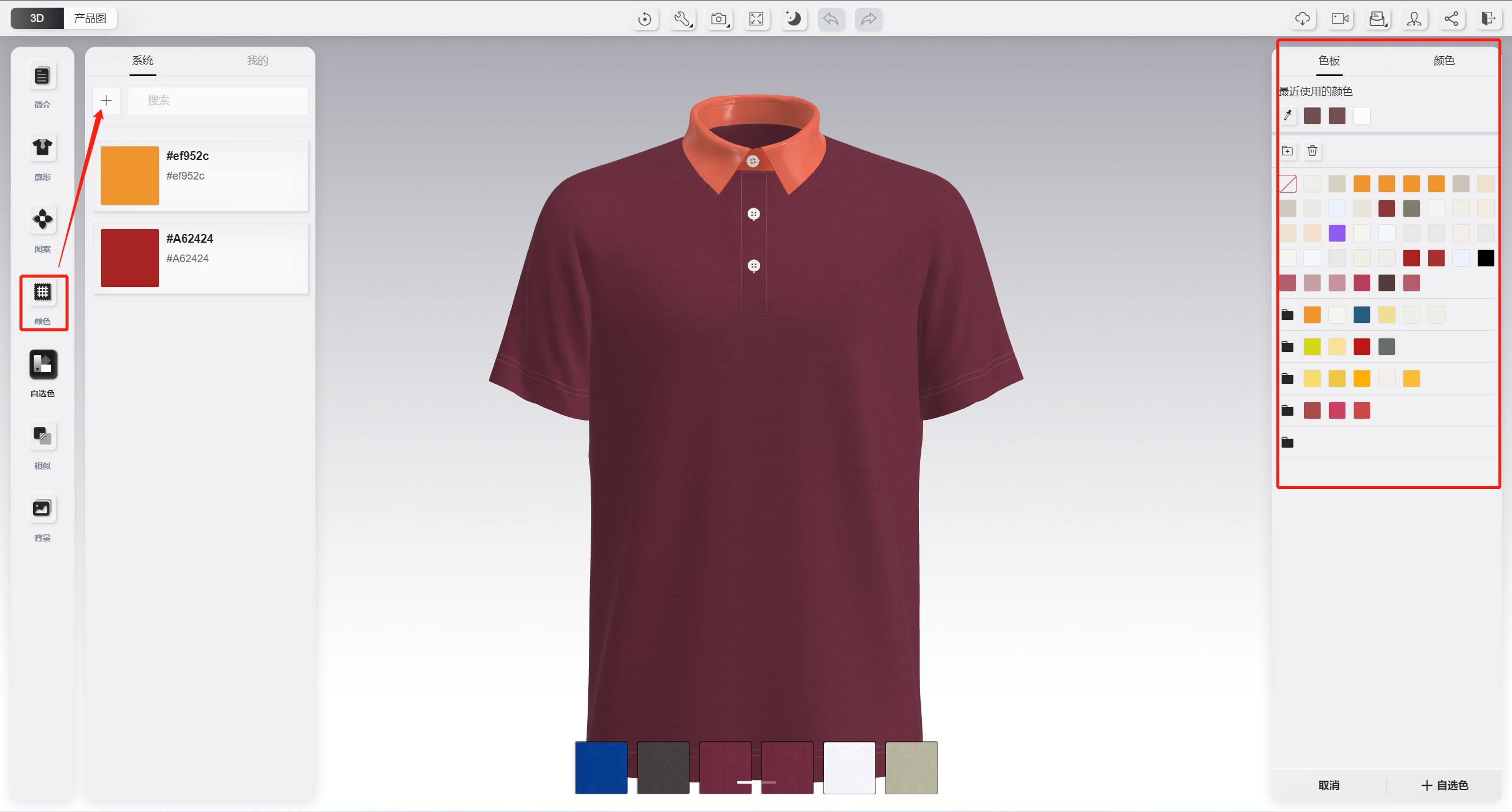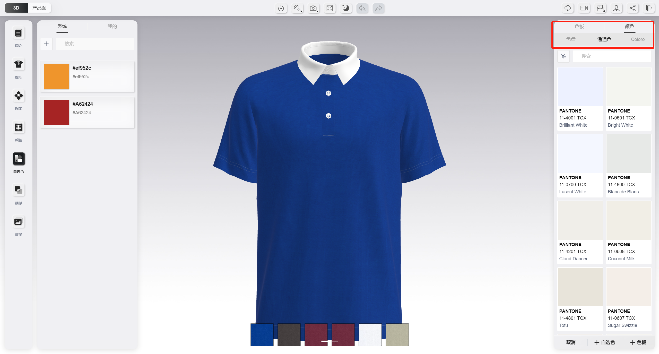 平台操作:添加方式基本一样,可通过色板/色盘/潘通色/coloro等方式添加颜色