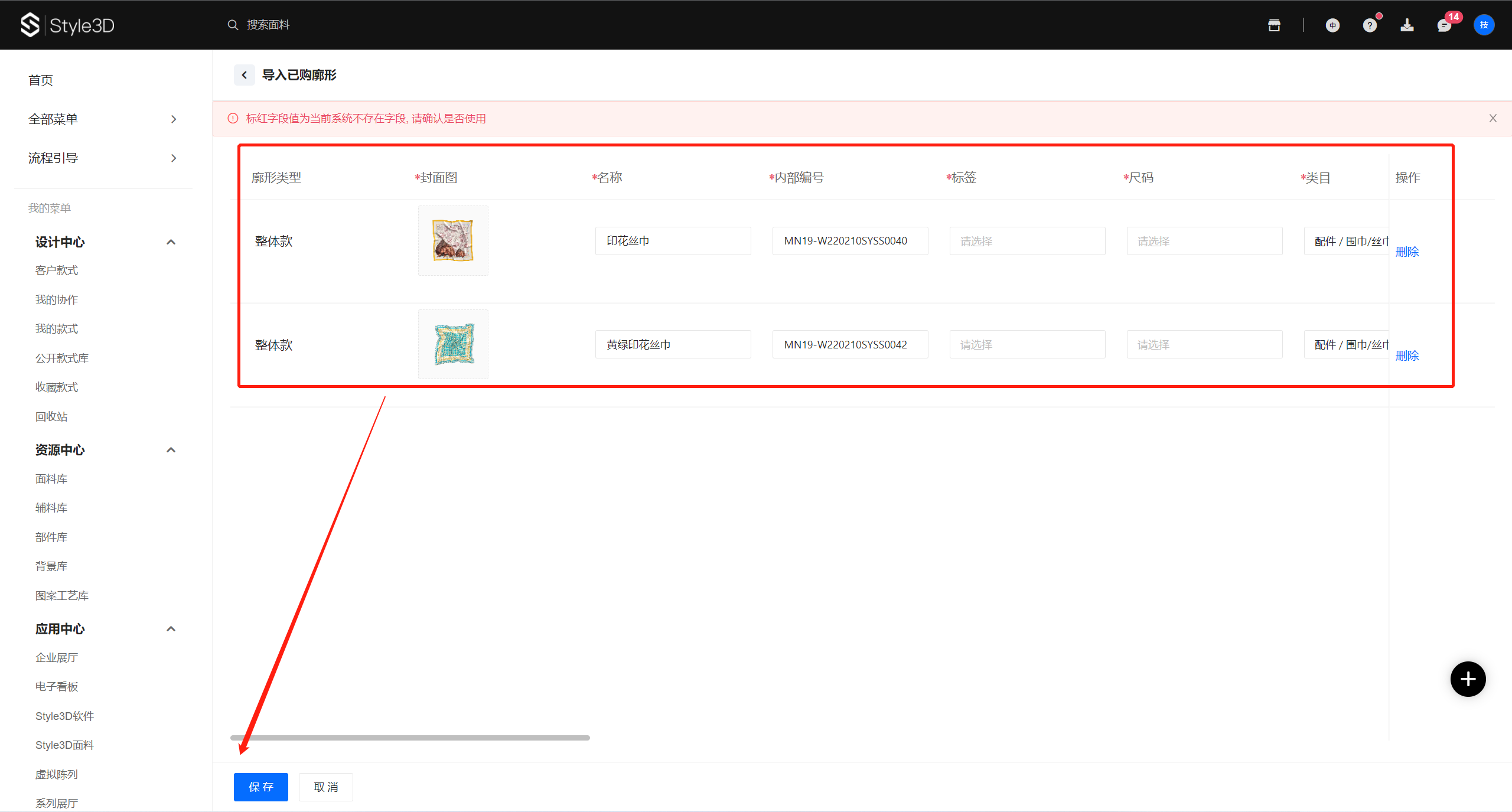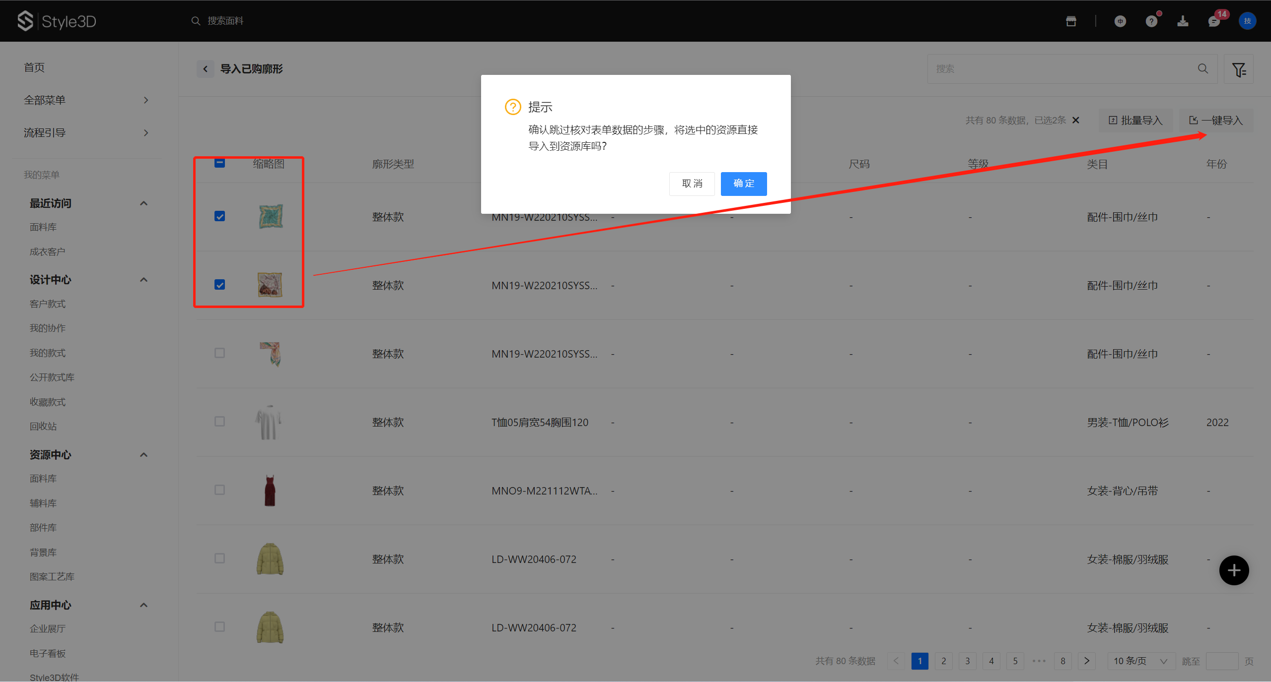勾选目标素材导入到企业资源库中,一键导入不需要核对及填写相关基础数据