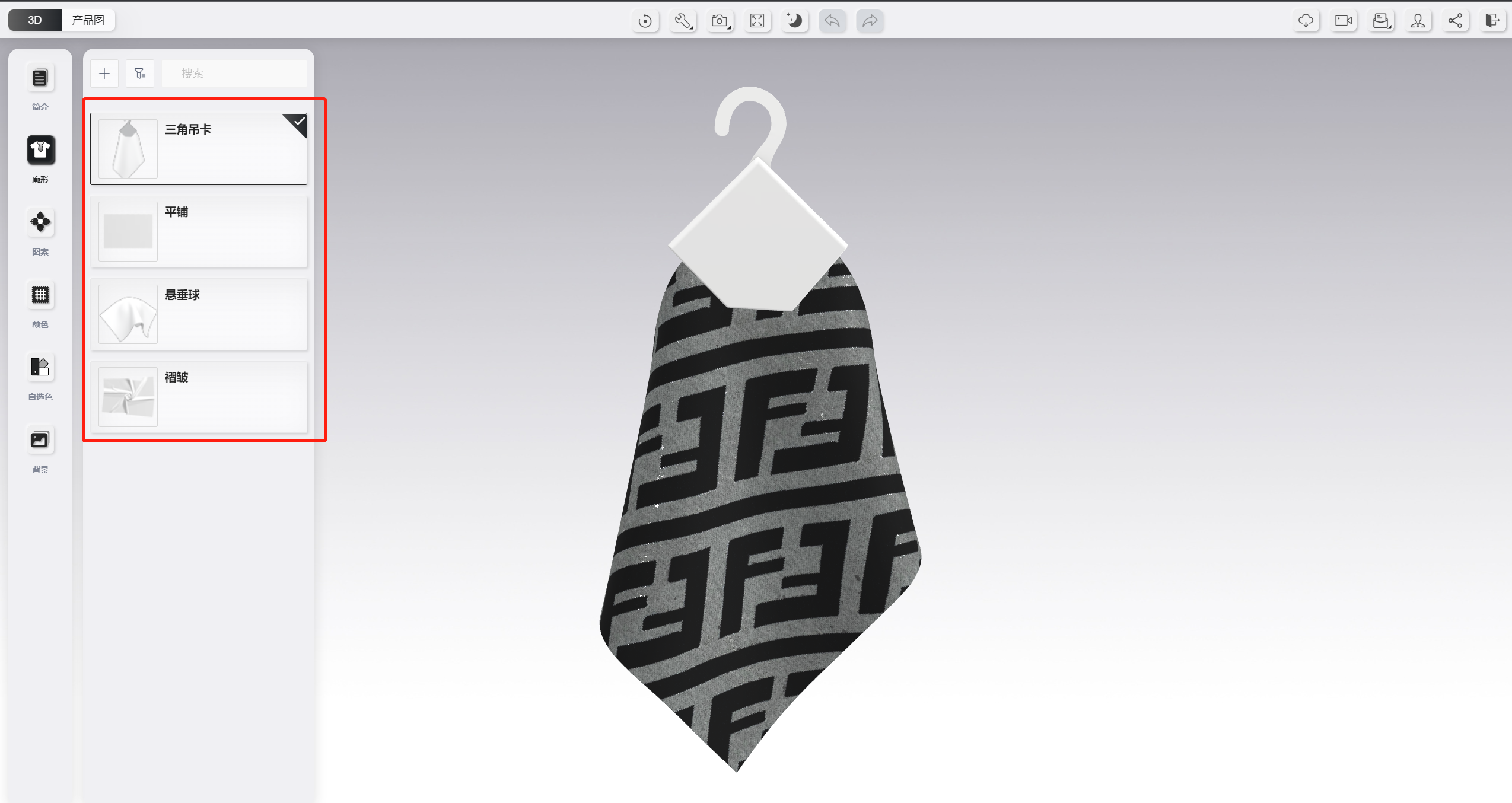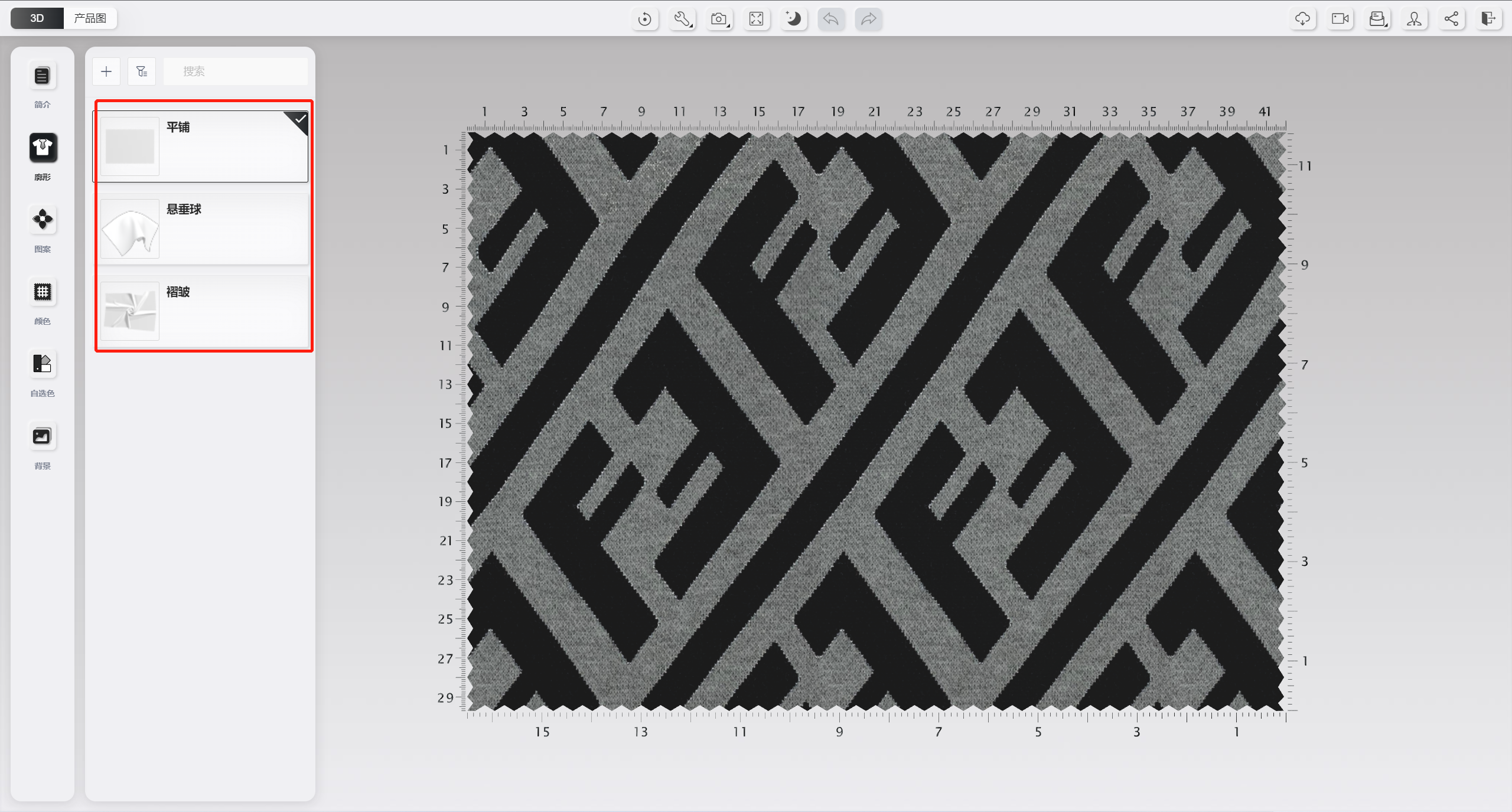 面料库详情页,在未关联服装廓形的情况下,默认展示面料平铺模型