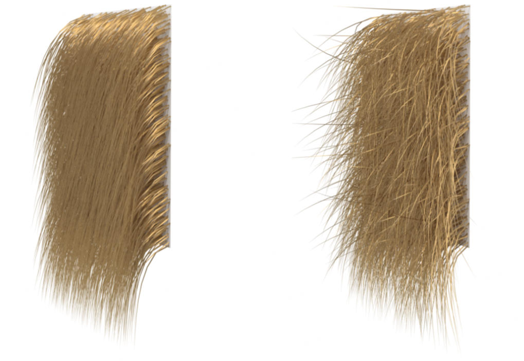 长度: 调整毛发长度的不规则性。数值较高会导致毛发长度更加不规则;相反,较小的数值则会使长度更加均匀。
