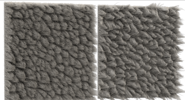 调整毛发聚集强度的随机性。范围在 [0, 1] 之间。数值越大,毛发聚集强度的随机性越高,导致聚集效果更加不规则。