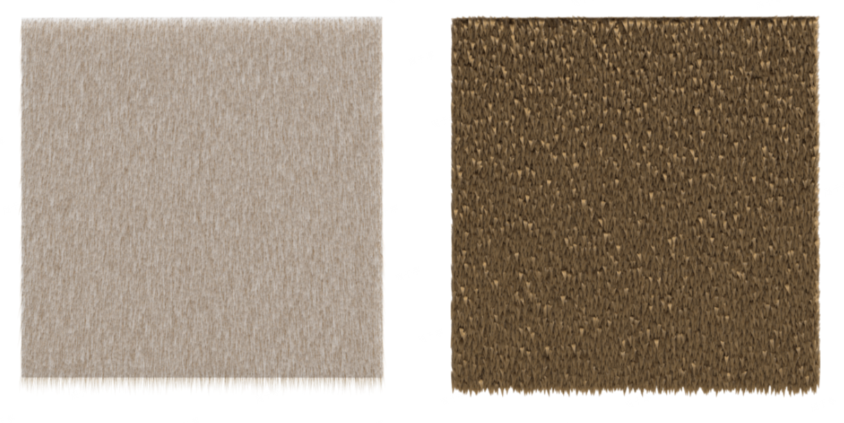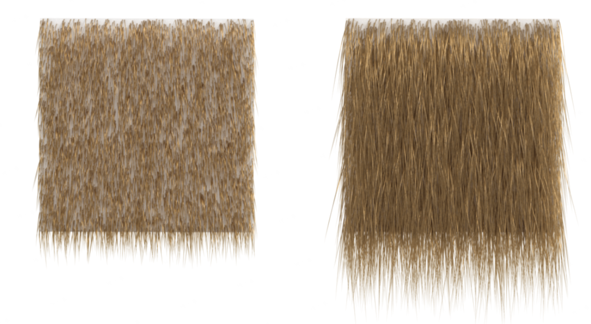 分段数:当毛发较长且弯曲度较高时,需要更多的段数以实现平滑和逼真的弯曲。相反,对于短而直的毛发,段数的影响较小。*注意:较少的段数会导致毛发更加直,这对于长毛发效果明显,但对短毛发效果不佳。