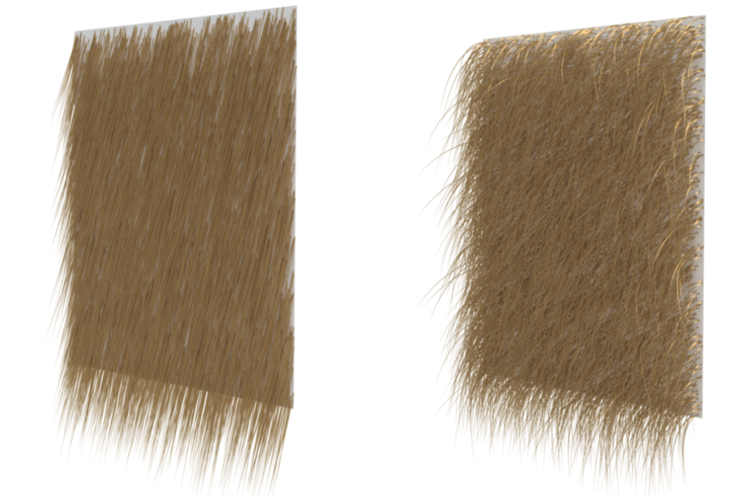 维度:调整毛发根部和尖端之间的粗细差异。较高的数值会使毛发尖端变得更细,而较低的数值则使根部和尖端的粗细更为相似。*注意:较高的数值会导致毛发尖端更细,而较低的数值则使尖端更粗,接近根部的粗细。