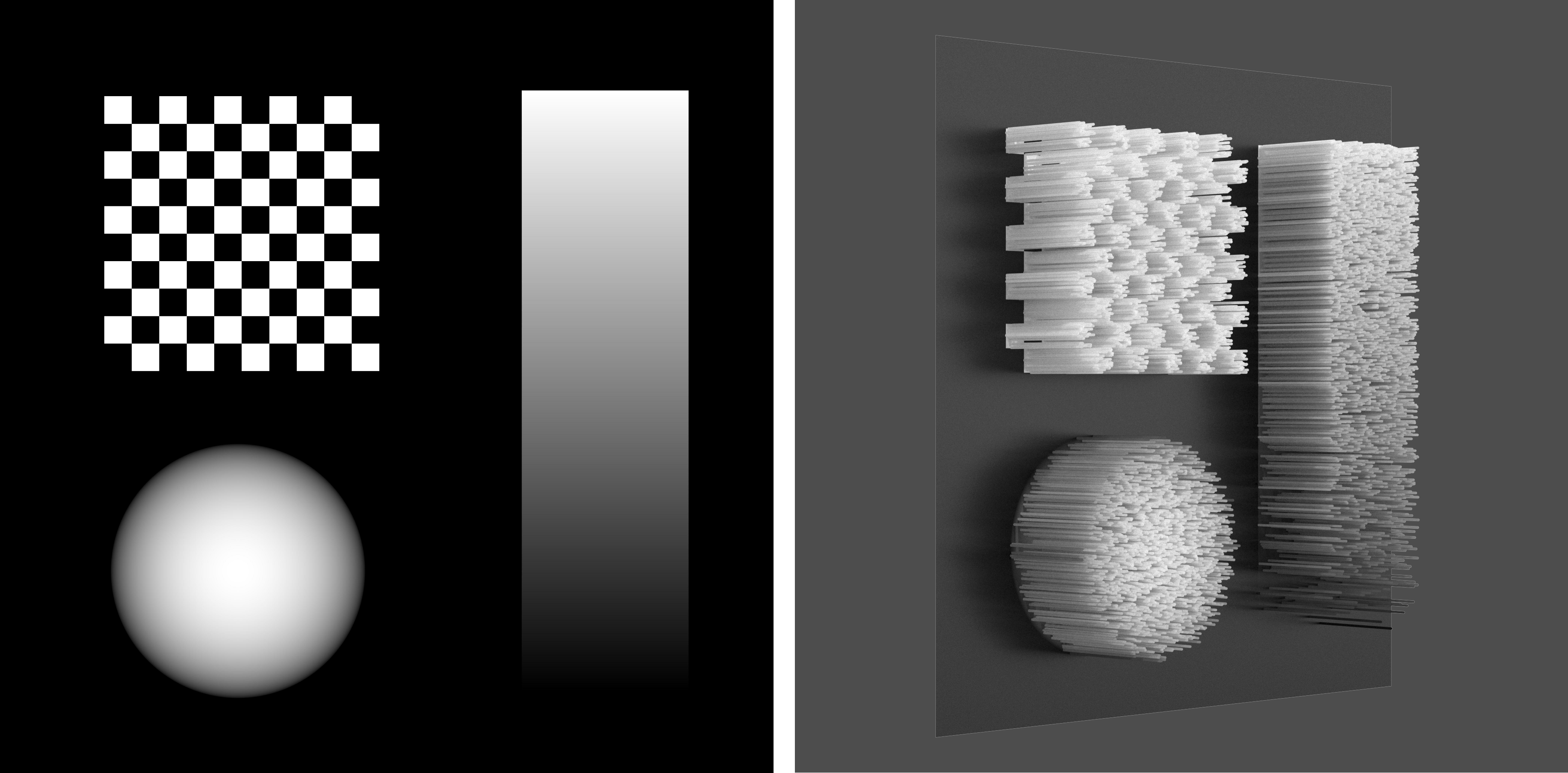 使用纹理贴图的亮度来控制毛发的粗细。黑色区域的粗细将被乘以 0,而白色区域的粗细将被乘以 1。