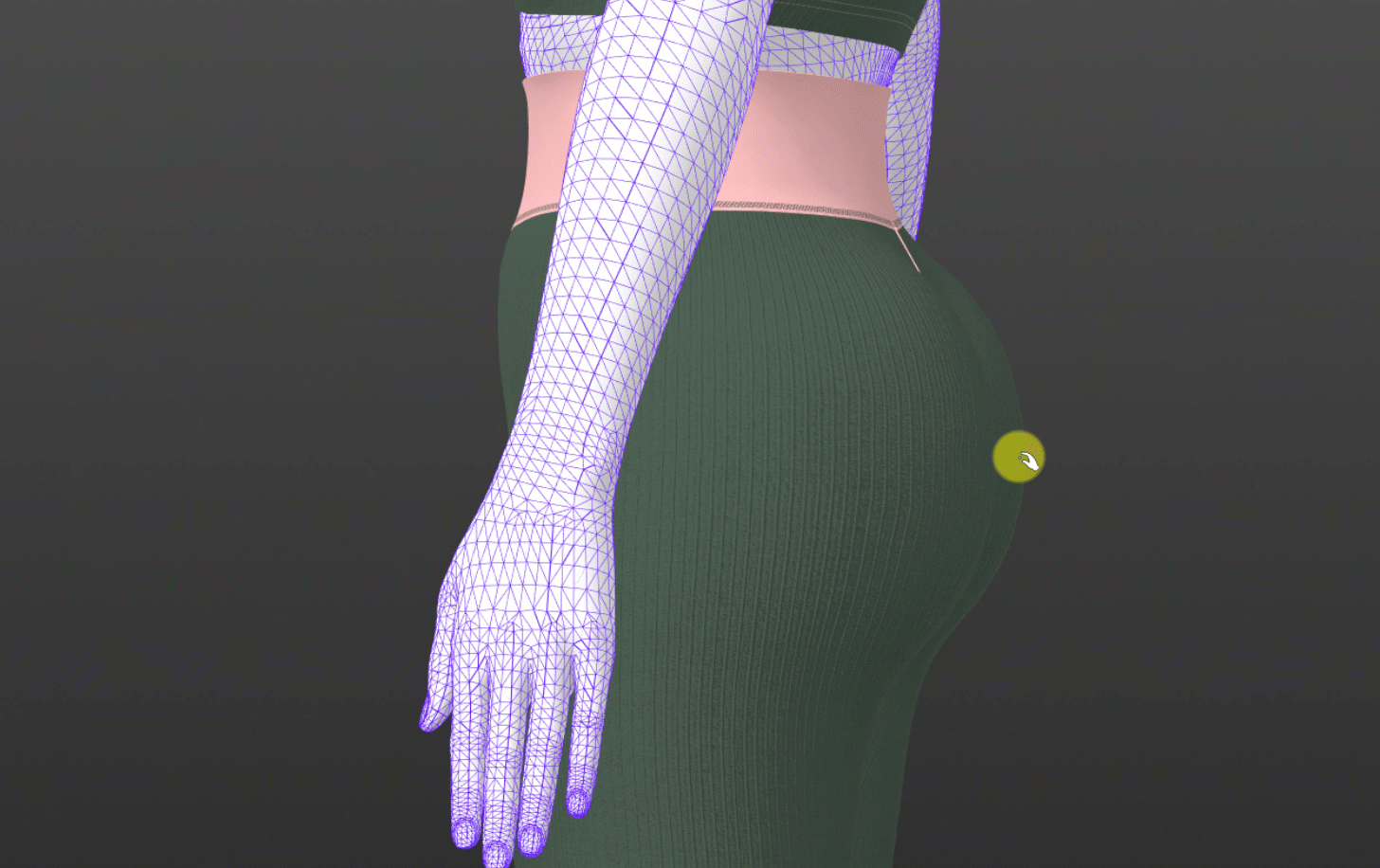 操作方法:选中模特▶属性编辑视窗▶勾选柔性人体▶模拟▶可直接使用鼠标与胸部和臀腿交互