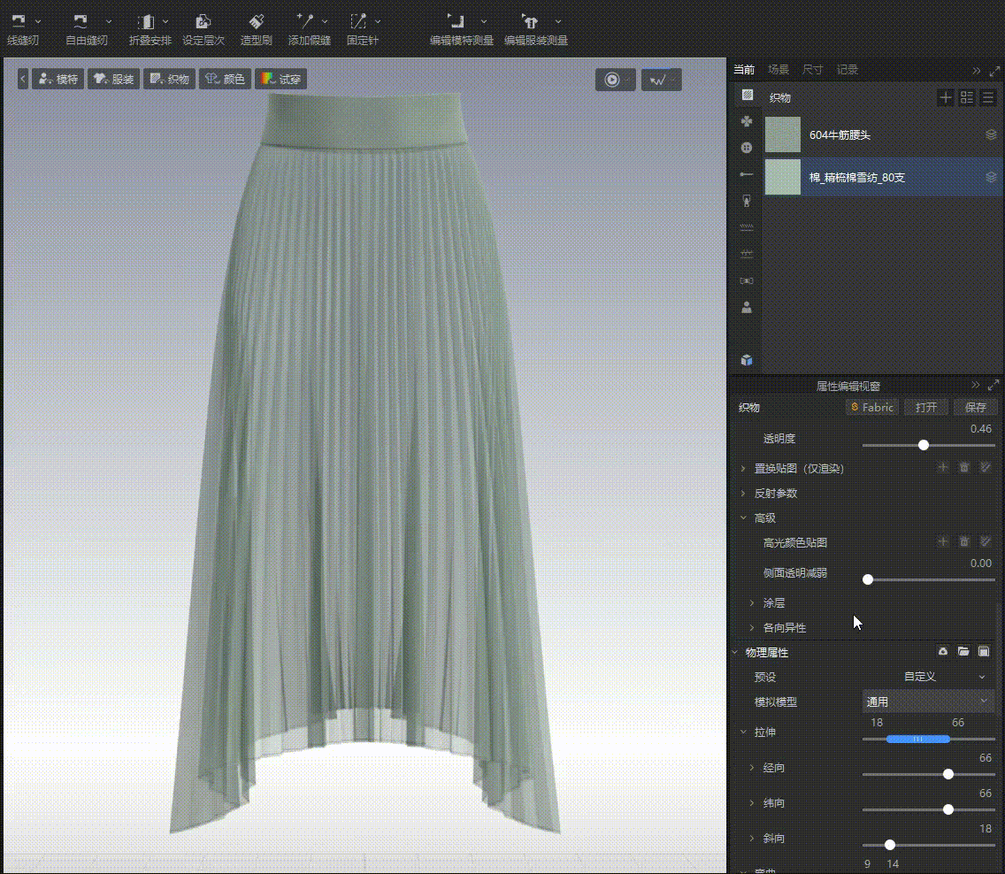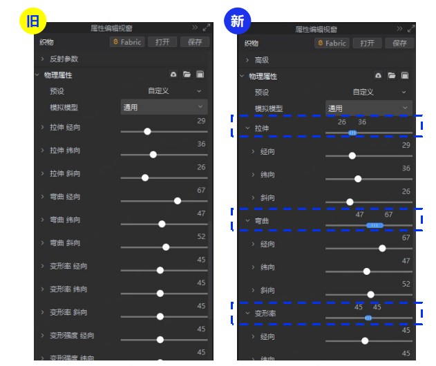 优化物理属性调整交互和面料库更新