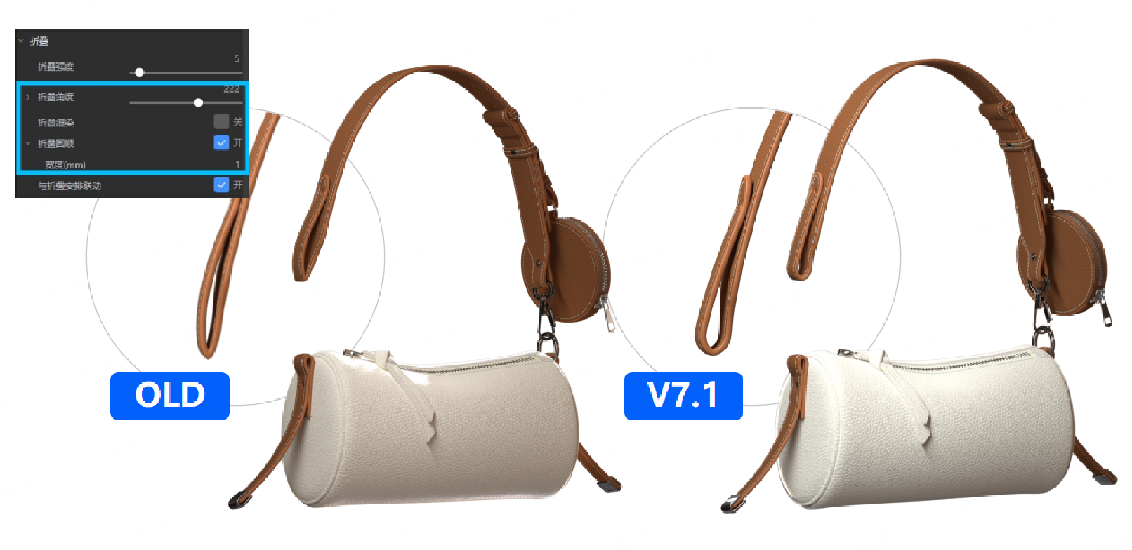 功能价值:用内部线翻折面料时,形成水滴型的折叠圆角,效果更加真实自然。