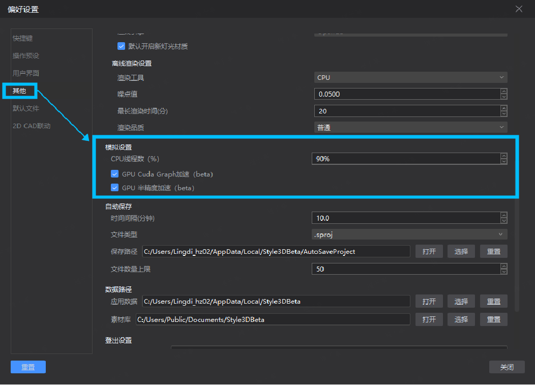 操作方法:偏好设置▶其他▶模拟设置▶GPU Cuda Graph加速(beta)